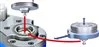 L'appui central et escamoté de 90° pour permettre l’usinage sur la rondelle. Celle-ci et maintenu par 2 brides pendant ces opérations. La fixation par vacuum est possible. La plaque porte pièce est à changement rapide avec indexation sans jeu.