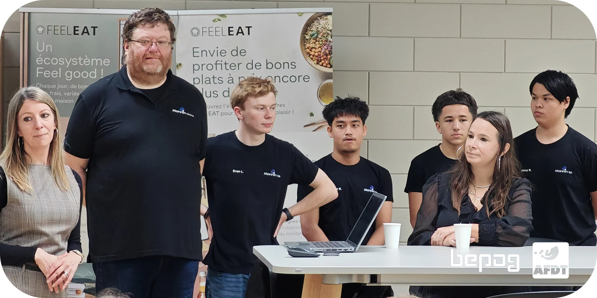 Ensuite, Evan XX apprenti de Xème qui a commencé son apprentissage avant l'existence de la Monnin Academy et ne tarit pas d'éloge sur cette évolution nous parle de son apprentissage dans lequel il se sent accompagné, valorisé et aidé tous les jours. Avant la visite, Joëlle Schneiter, directrice de l'AFDT, a présenté également les métiers et les voies de formation.