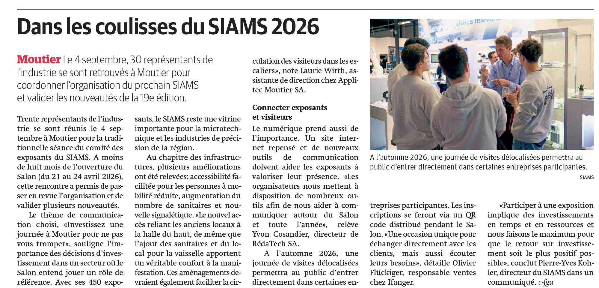 Le Journal du Jura se penche sur les coulisses de SIAMS. Merci 🌞