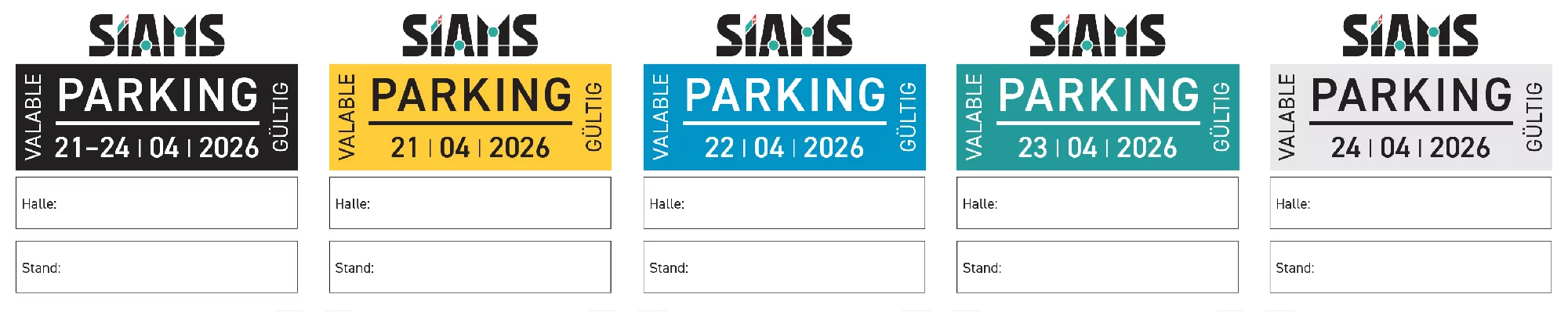 Toutes les vignettes comportent vos numéros de halle et de stand et devront obligatoirement être collées pour être valables.