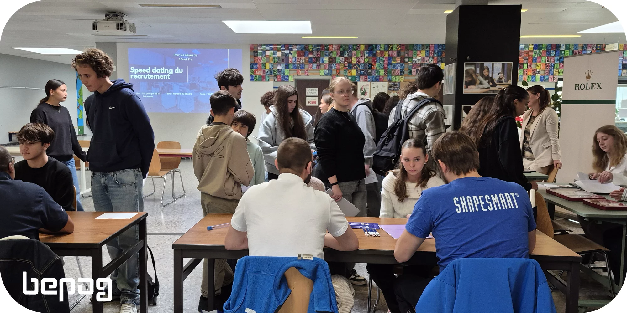 En mai de chaque année, les élèves de 10e année participent à une rencontre avec des entreprises régionales dans un but de sensibilisation et de premier contact avec le monde du travail. Cette année, l’événement a eu lieu le 13 mai 2025. Bepog a présenté le speed dating aux entreprises présentes ce jour-là.