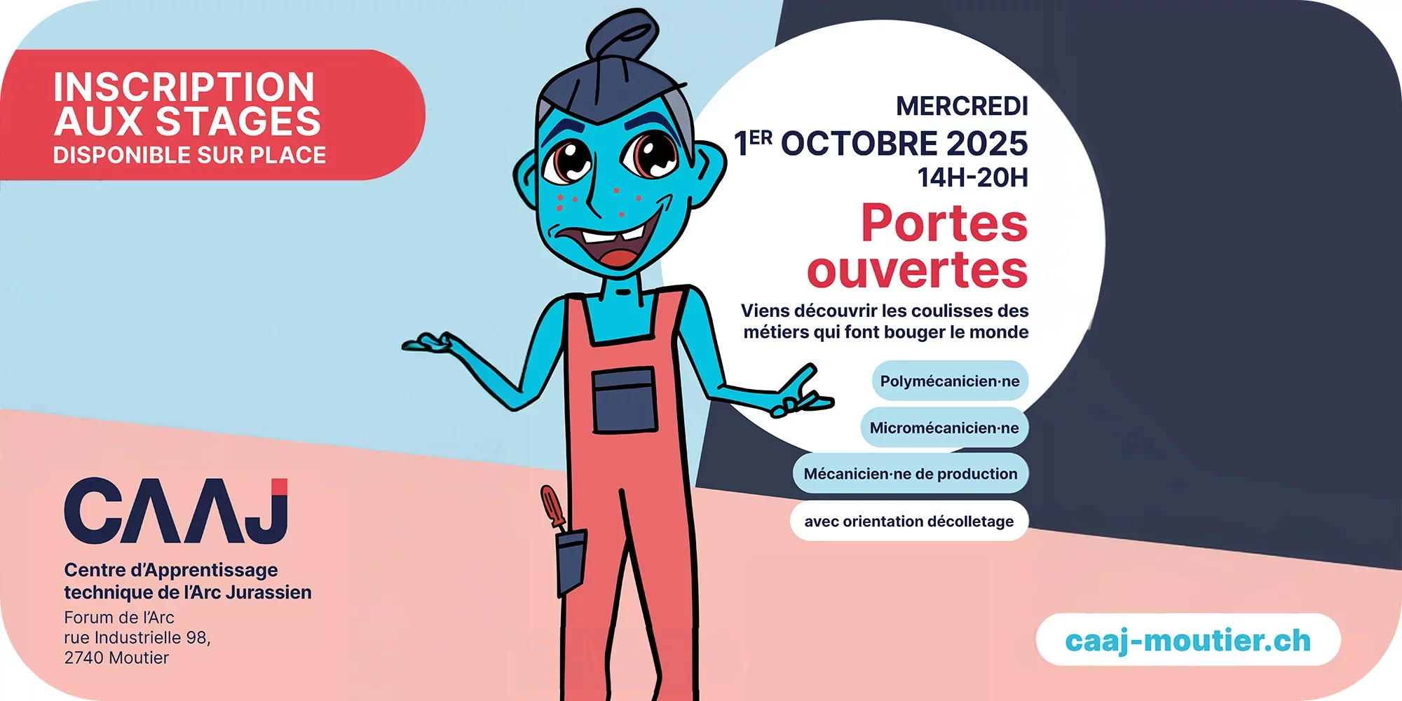 Le mercredi 1er octobre, le centre d'apprentissage de l'Arc jurassien à Moutier (CAAJ) ouvre ses portes de 14 heures à 20 heures.