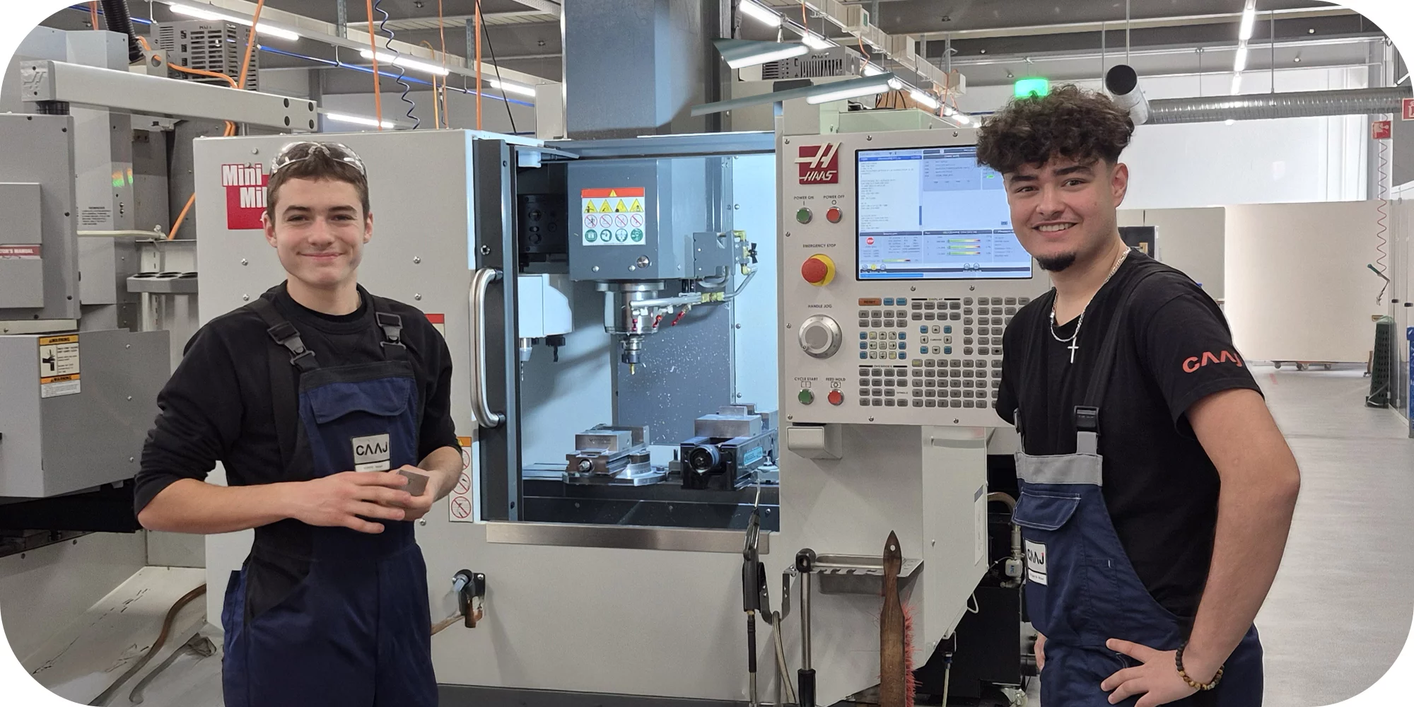 Nolan Vorpe et Mickaël Dos Santos (apprentis au CAAJ) prennent la pose et démontrent la bonne ambiance qui règne dans le centre de formation.