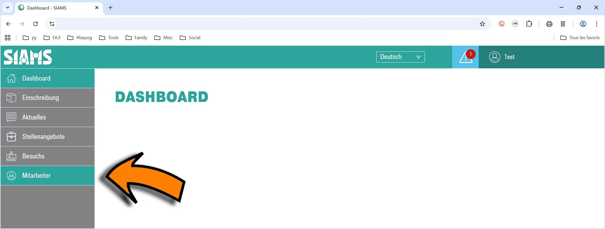 Melden Sie sich mit Ihrem üblichen Login an und wählen Sie dann „Mitarbeiter”.