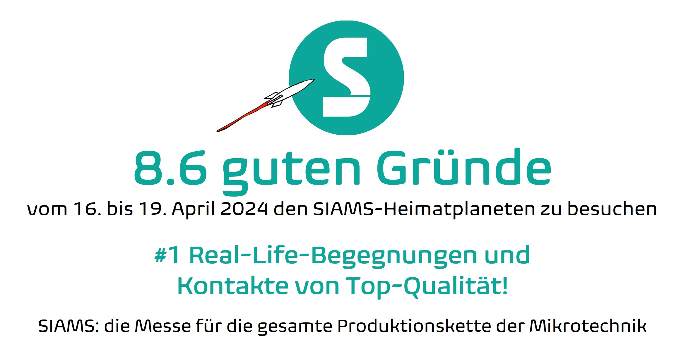 Die Welt entwickelt sich immer weiter. Die AusstellerInnen arbeiten und innovieren ununterbrochen, um ihre Produkte, Dienstleistungen und Lösungen zu verbessern. Die SIAMS ermöglicht ihnen, sich dort zu präsentieren, wo es zählt, im Herzen der Mikrotechnik-Welt: also dort, wo Besucher sich informieren, Kontakte knüpfen, Geschäfte machen und sich einer ganz besonderen Atmosphäre aus Professionalität und Ungezwungenheit erfreuen.